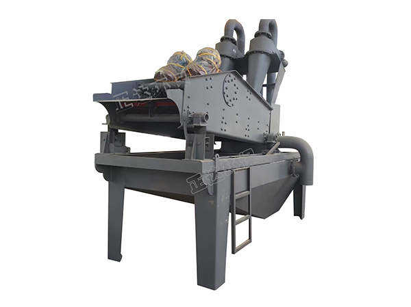 該設(shè)備由電機(jī)、耐磨泵、砂漿濃縮器、直線脫水篩篩清洗槽、反料箱等部件構(gòu)成。泥漿水流入清洗槽,通過(guò)耐磨泵將泥漿水送入濃縮器,經(jīng)過(guò)濃縮器把污水和沙分離,砂經(jīng)噴頭到脫水篩,脫水后送入輸送帶。污水回到反料箱,分流入清洗槽,多余部分外泄。